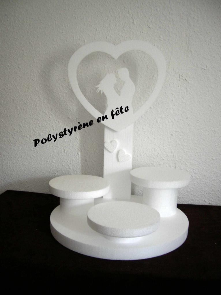 Base 50cm + 3 plateaux de 24cm + décor couple dans coeur sur colonne